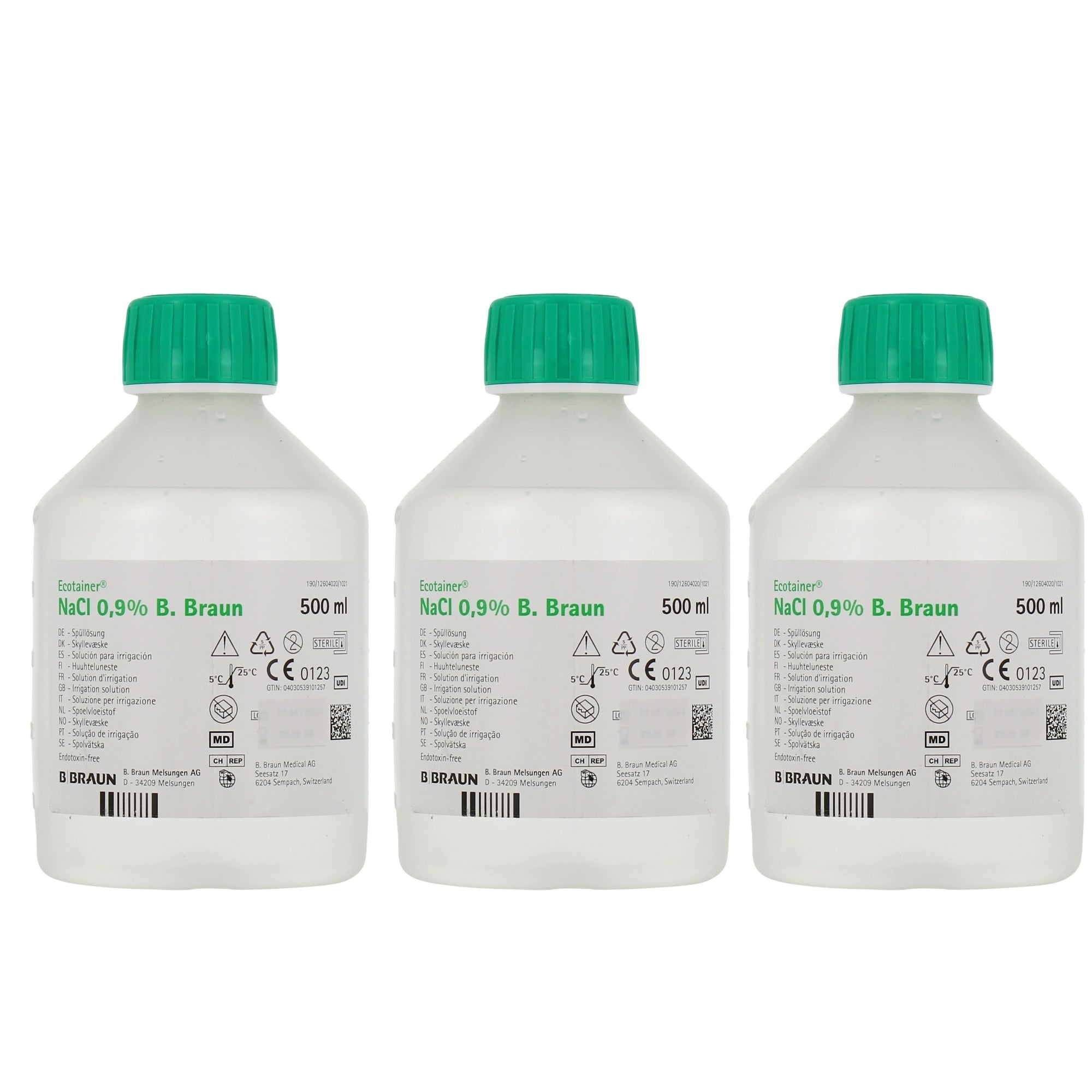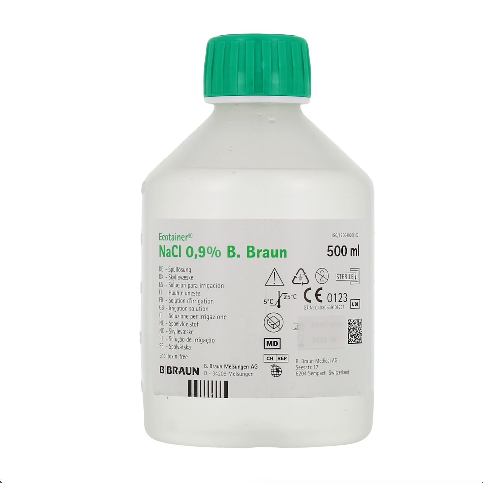 B.BRAUN NaCl 0.9 Solution saline physiologique isotonique pour le nez et les yeux, 1L, 500 ML
