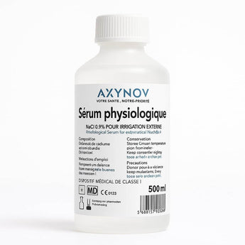 AXYNOV NaCl 0.9 Solution saline physiologique isotonique pour le nez et les yeux, 1L, 500 ML (Copie)